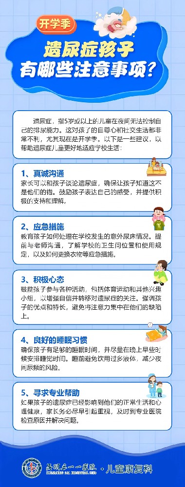 开学季到来,儿童遗尿问题需家长重点关注。这不是能“自愈”的小事,长期忽视可能影响孩子校园社交与心理健康!